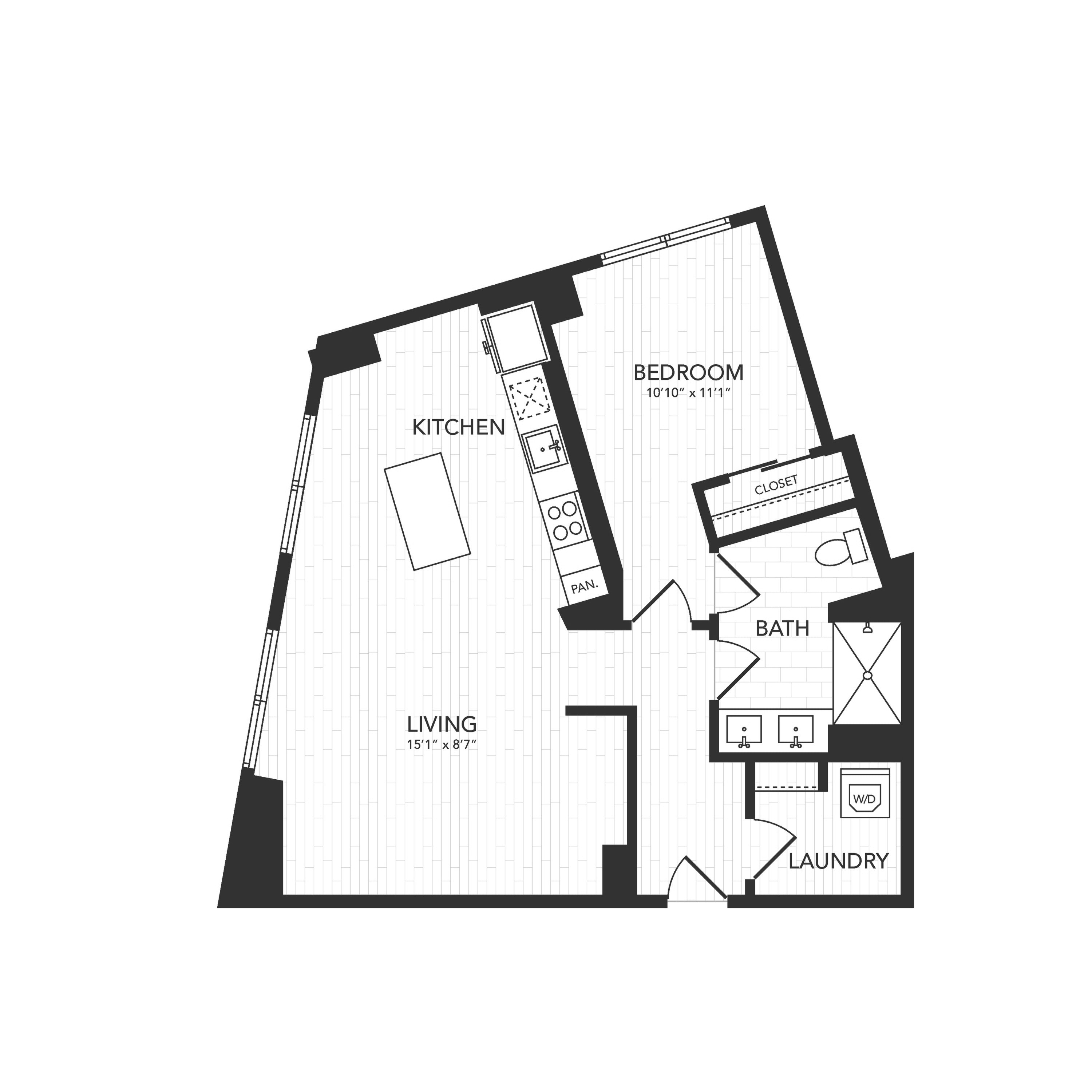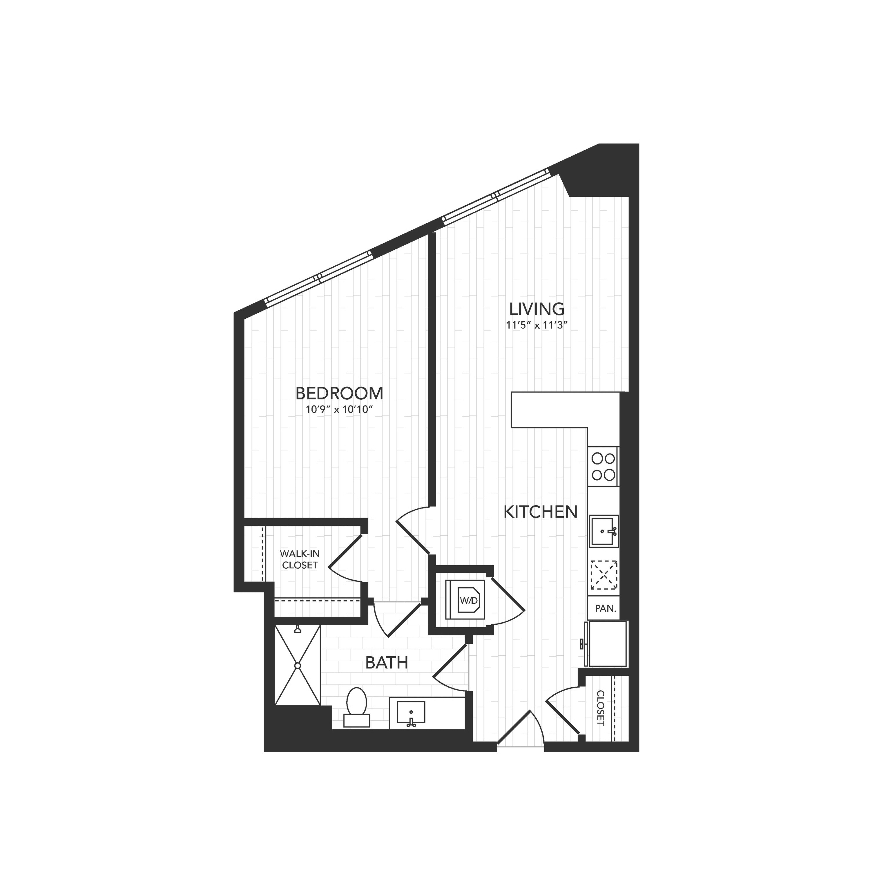 Q: I’m interested in the 1 bedroom floor plan. What is its starting price?