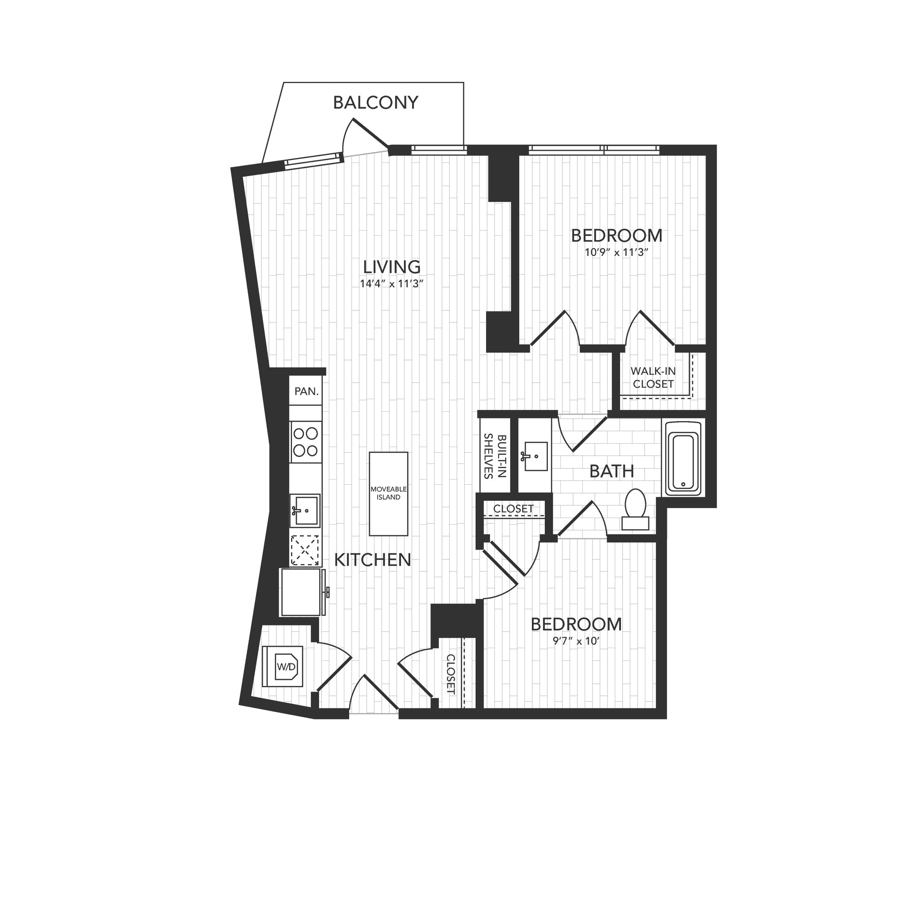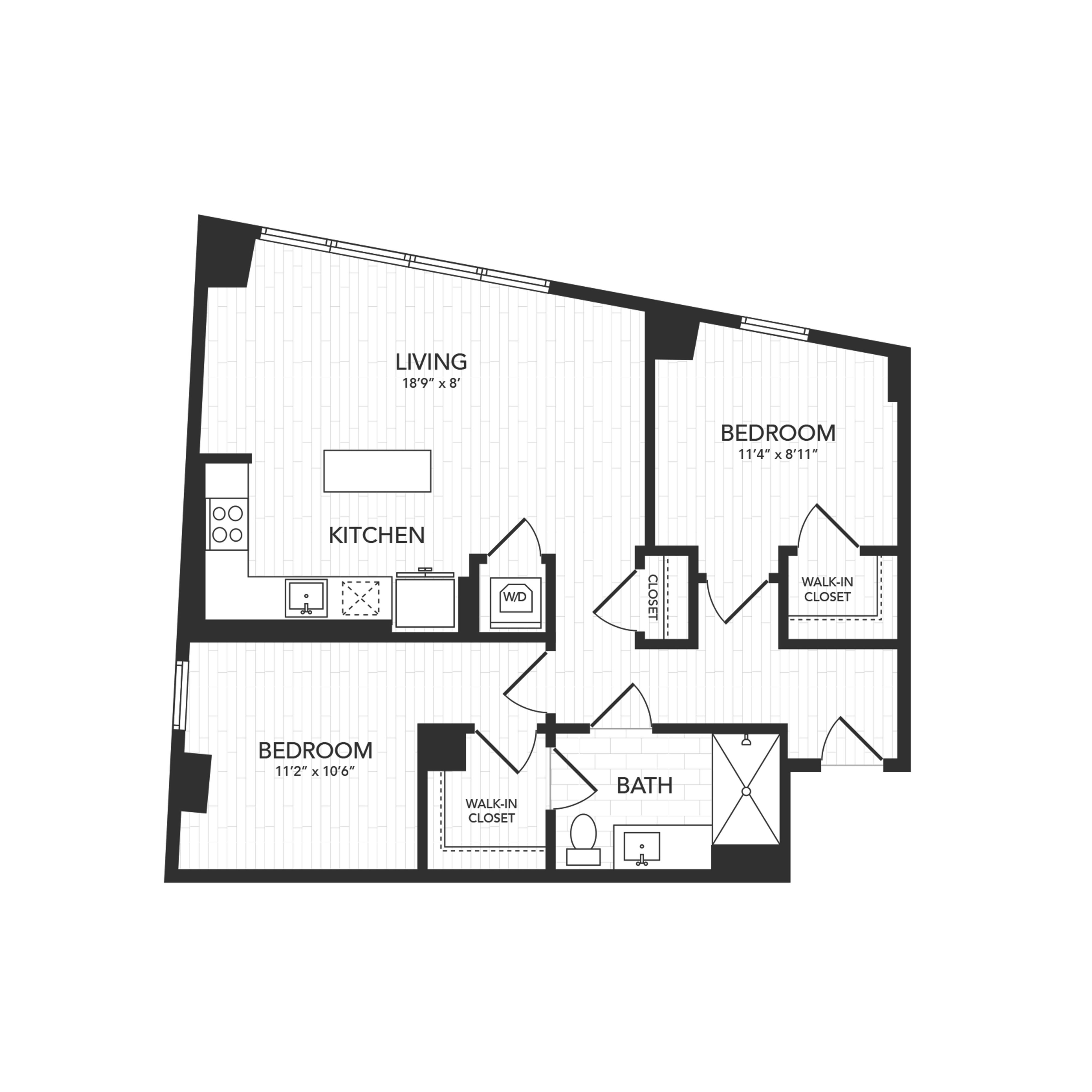 Q: I’m interested in the 2 bedroom floor plan. What is its starting price?