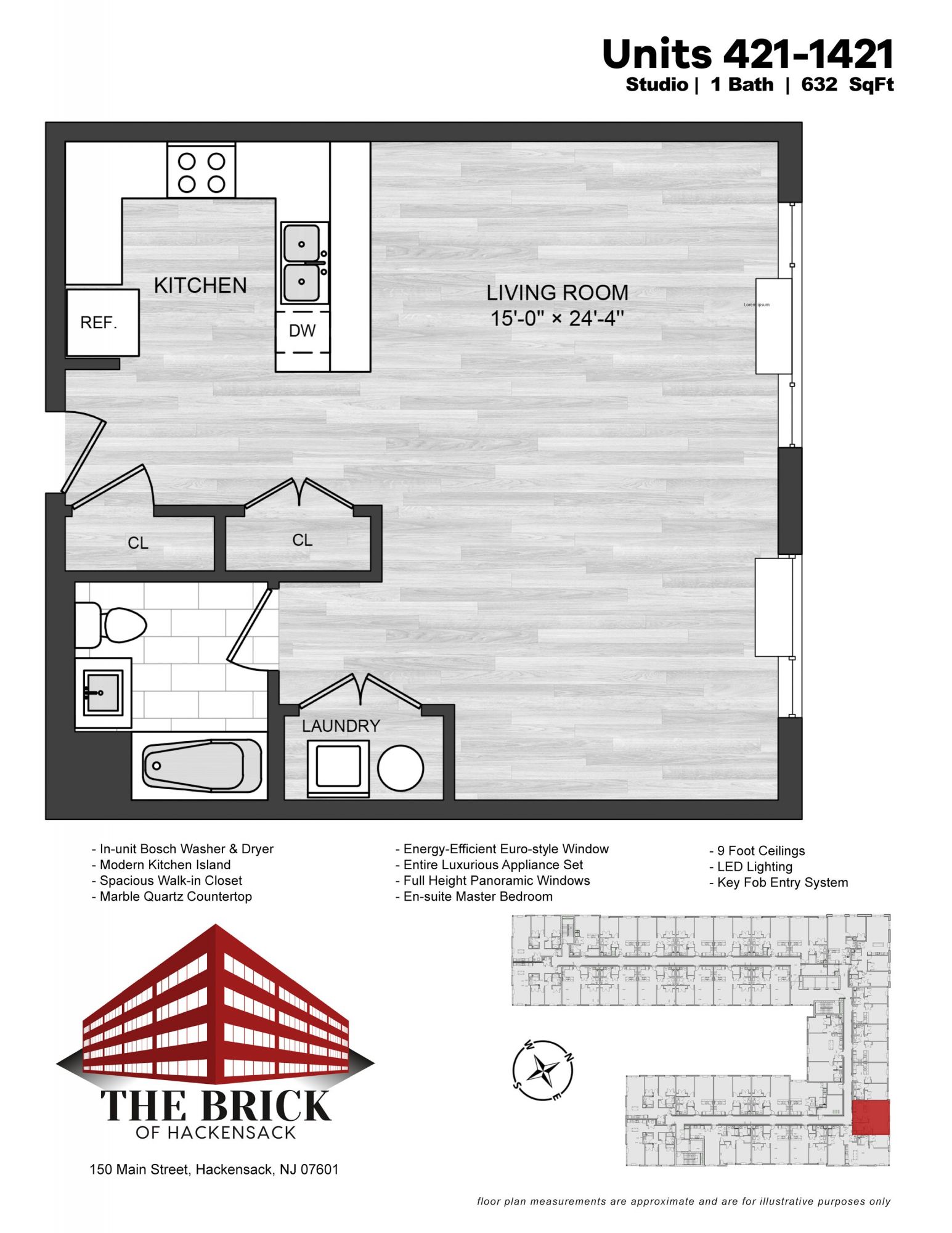 Indulge in beautiful views, modern architecture, and thoughtful amenities in an exclusive Manhattan-inspired apartment home at The Brick. Located in the heart of Downtown Hackensack, the community includes a sky lounge with panoramic views, garage parking, an oasis pool and approximately 8,000 squar...